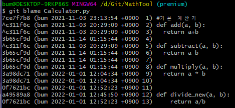 git blame 파악할 파일명