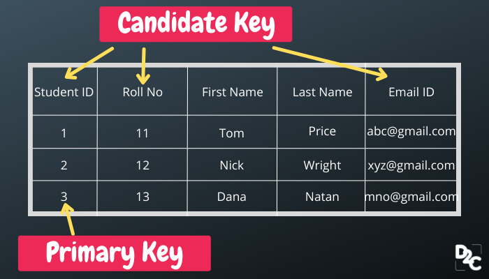 하나의 로우를 특정 지을 수 있는 attribute들의 최소 집합
