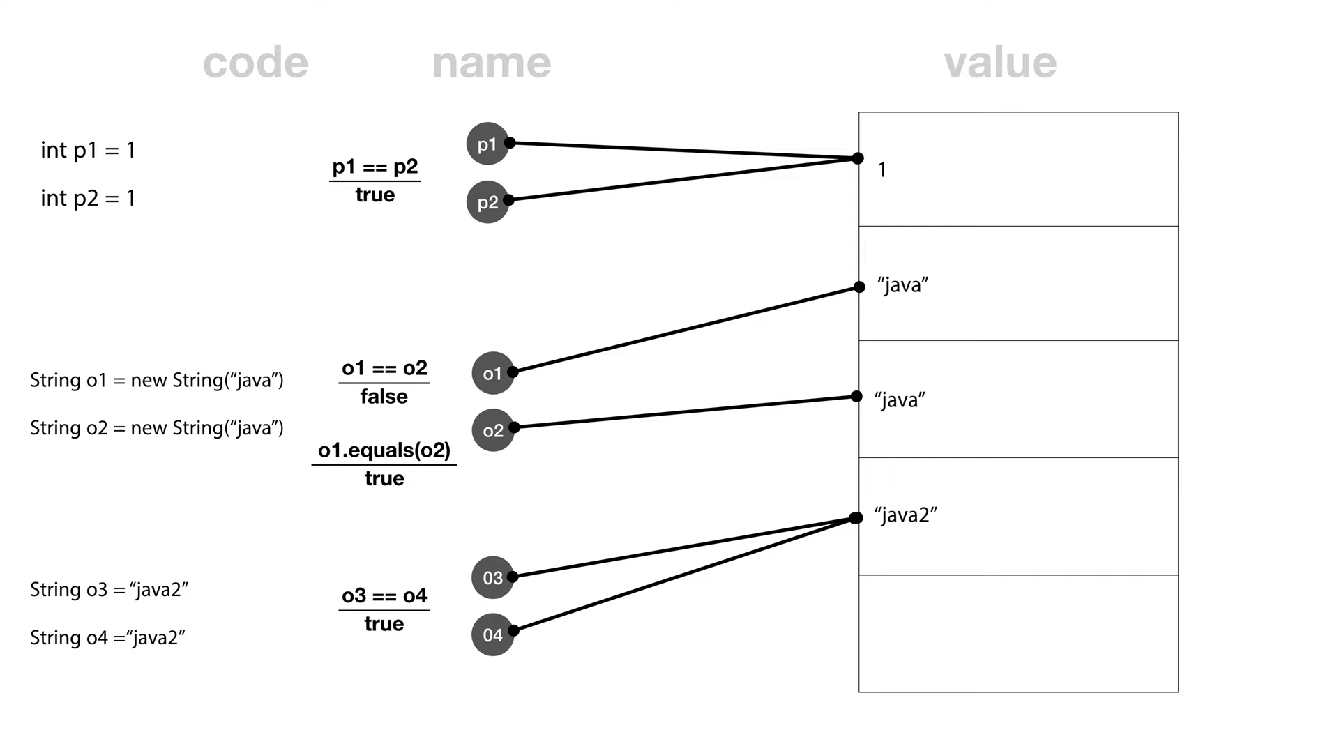 원시데이터가 아닌경우 equals를 사용하여 비교해야함